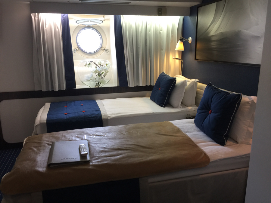 par un équipage de 32 personnes, mais comme souvent quelques passagers souhaitent une cabine single, le nombre de passagers tourne aux environs de 55.