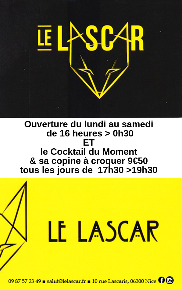 En conclusion, une adresse très conviviale pour tester un cocktail étonnant, tout en dégustant une ou plusieurs assiettes de tapas. De plus, c’est facile à retenir, Le Lascar 10 rue Lascaris à Nice. Un conseil, surveillez Facebook, car vous y découvrirez la programmation des événements. Suivez également le Lascar sur Instagram.