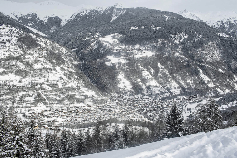 Nous arrivons au lieu-dit le Bois de Champagny la Vanoise sous une neige qui tombe abondamment, accompagnée d’un vent soutenu. Georges décide une visite du bourg avec une explication sur la disposition du village et l’inclinaison des toits en fonction de la neige et du vent. Nous retenons un grand principe, sauf tempête, toujours oser, car la récompense est au bout du chemin.