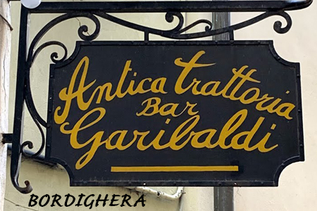 Nous sommes retournés à BORDIGHERA en cette saison hivernale pour tester un autre restaurant typique : ANTICA TRATTORIA GARIBALDI. Après avoir pénétré dans la vieille ville, il faut rejoindre, sur la droite une ruelle étroite, la Via Della Loggia, pour dénicher cette trattoria, un restaurant italien simple, familial et bon. Nous sommes transportés dans un film italien des années 50.