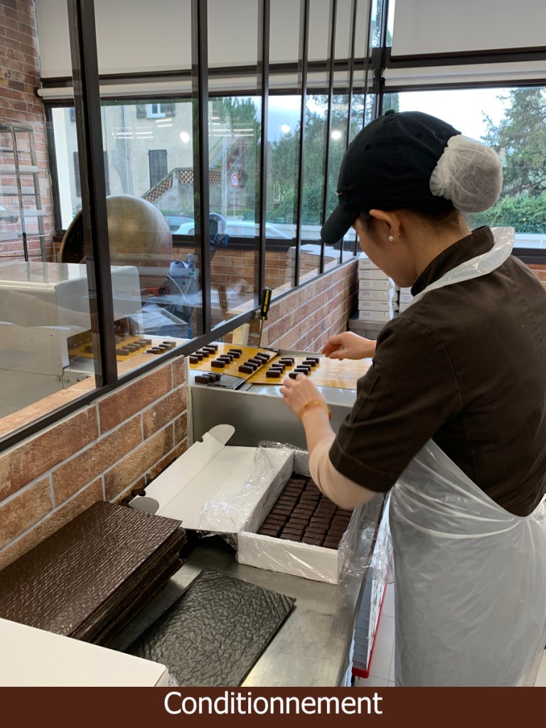Le chocolat noir l’emporte sur chocolat au lait, il représente les 2/3 de la production. Philippe nous précise que la dégustation du chocolat est un moment de plaisir et que chacun doit trouver son bonheur, c’est pour cela que dans les tablettes de chocolat l’éventail est large : noir… 70, 80, 100 %, chocolat au lait, ou blanc, classiques ou fantaisies, toujours avec du « vrai » chocolat pur beurre de cacao !
