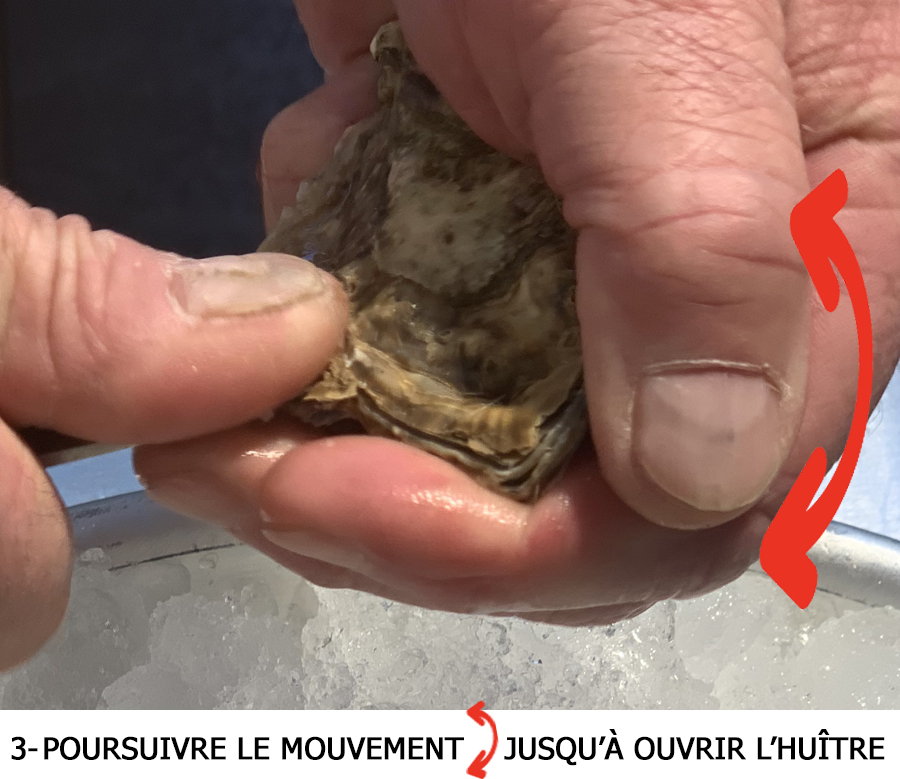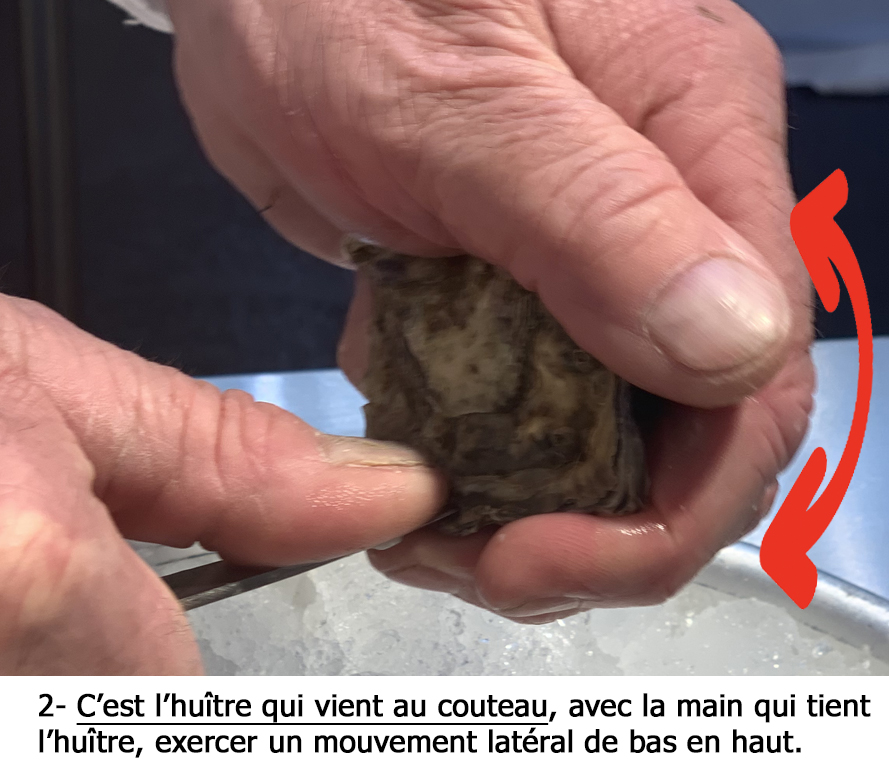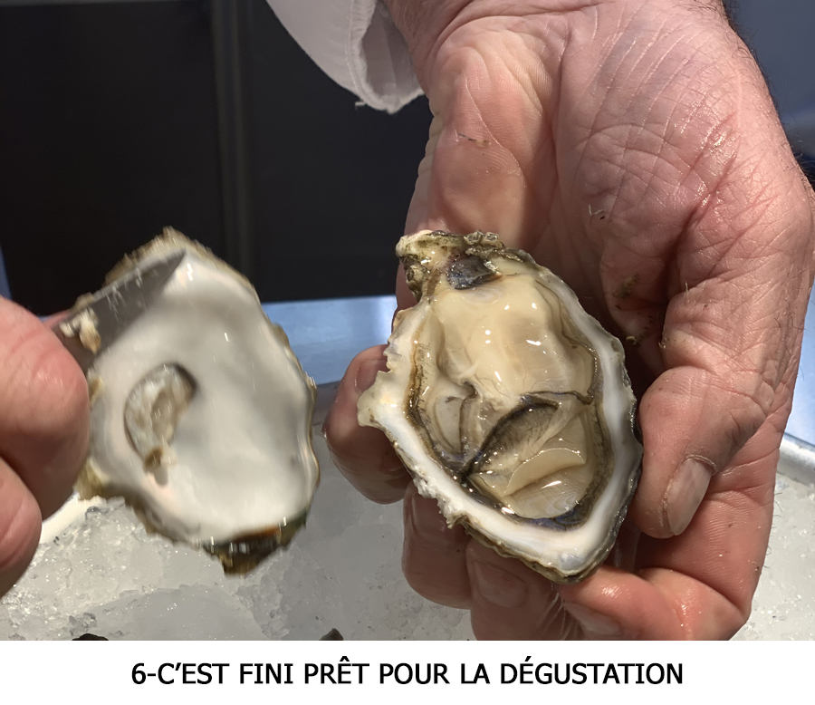 Il a bien voulu partager son secret sur l’ouverture de l’huître. Voici donc en photo et en vidéo au ralenti le secret.