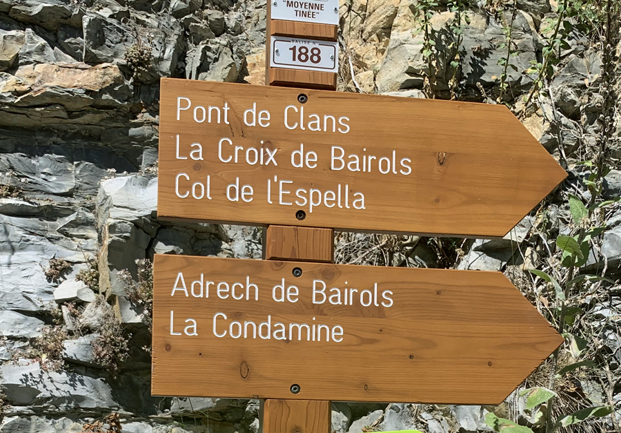 Après le pont de Clans, une signalisation appropriée indique la direction de Bairols.