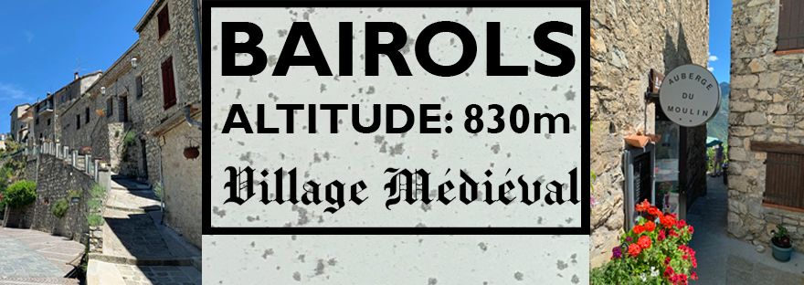 Nous cherchions une idée de promenade dans l’arrière-pays et notre choix s’est orienté vers un village perché à 58 km au nord de Nice : BAIROLS.
