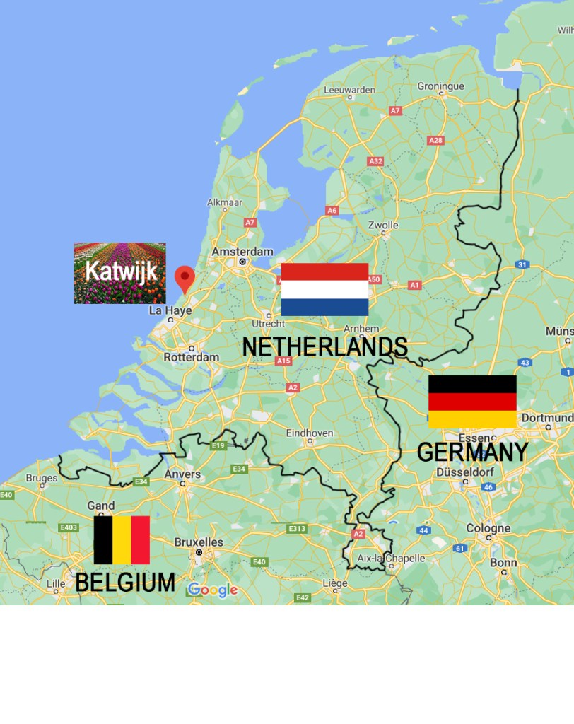The scene takes place in the NETHERLANDS and more precisely in Katwijk, a town located on the magnificent North Sea coast, known for its many fields of tulip, hyacinth and daffodil flowers.