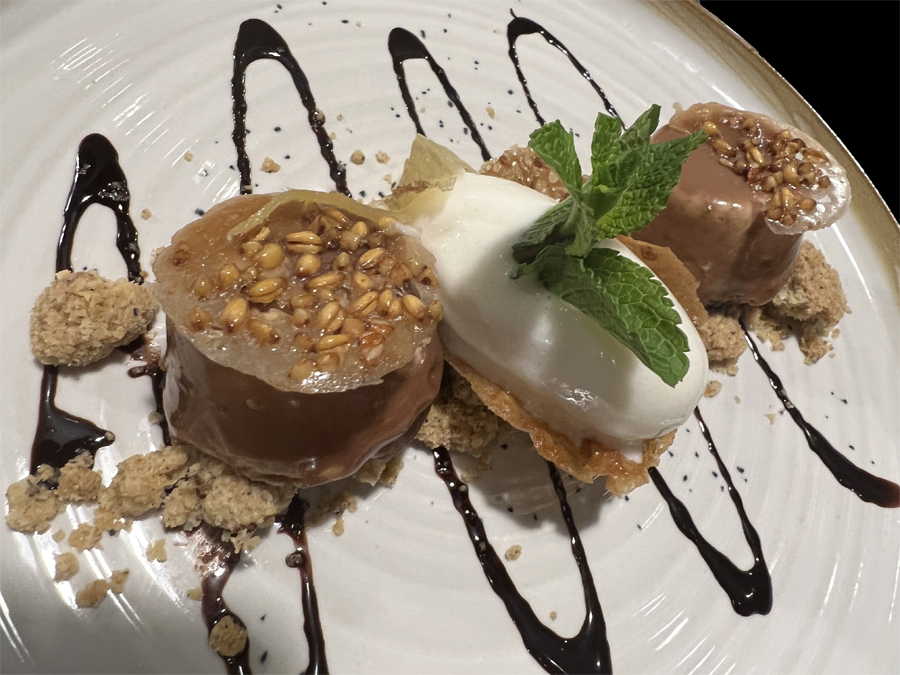 Unique par le soufflé, soit au Grand Marnier, soit au citron. Exceptionnel, ce dessert est léger, onctueux, sublime. Il est la signature de la pâtissière maison et son adjoint.