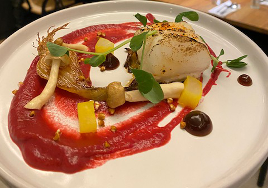 Le chef privilégie les producteurs locaux et les bons produits du marché. La carte des vins est très fournie avec plus de 150 références. Si vous le souhaitez, vous pouvez choisir, un verre, une bouteille ou une proposition d’accords mets-vins. Voici un exemple avec le menu dégustations du 1er au 12 mars 2022.