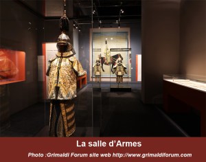 1- LES MANDCHOUS dont le principal thème est : « conquérir l’empire ». Nous sommes d’emblée accueillis par les tenus d’apparat des guerriers et attirés par ce trône éclairé qui surgit dans pénombre au bout de la galerie.