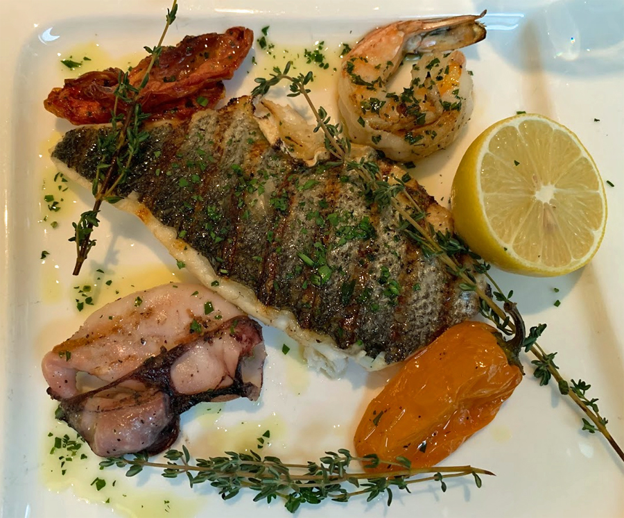 Voici un restaurant qui est situé à deux pas de la place Navona. C’est un restaurant très prisé par les Italiens. Sa réputation n’est pas surfaite. L’entrée est très discrète, avec côté cuisine un étal digne d’une poissonnerie. Le décor est sobre, mais raffiné. Le chef, Gino Tarquinio, privilégie la qualité, sélectionne ses produits et, à partir d’eux, réalise le menu. La philosophie du restaurant s’articule autour de l’alchimie harmonieuse de deux facteurs: la sélection rigoureuse des matières premières et le choix de tout préparer au dernier moment.