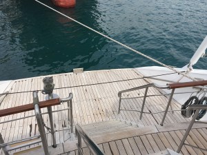 Nous avons appris un mot : le maître-bau qui correspond à la plus grande largeur d’un navire. Il dérive du mot bau qui signifiait barrot, soit une pièce de structure transversale servant à raidir le bordé aligné sur chaque membrure et soutenant le pont, en s’étendant de part et d’autre du navire pour le ponant le maître-bau est de 11.9 m.