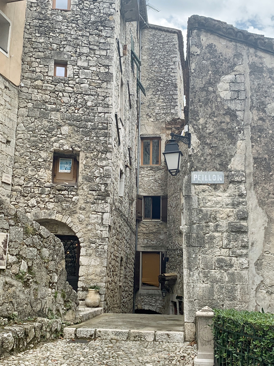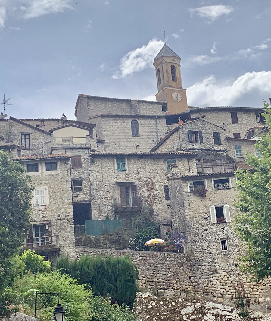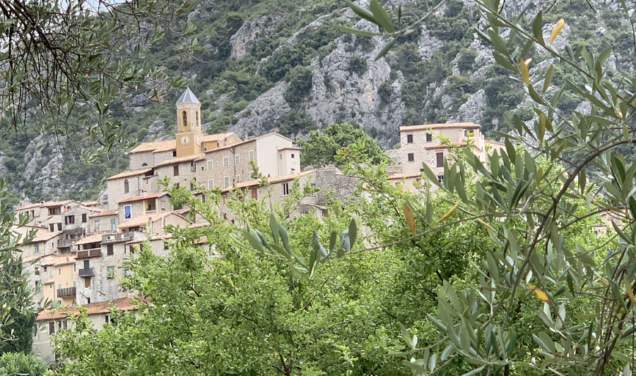 À environ une demi-heure de voiture de Nice en direction de l’est par la pénétrante vers Drap, nous avons découvert l’un des plus beaux villages de l’arrière-pays. Son architecture typiquement médiévale avec son empilement, ses passages voûtés, ses petits escaliers tortueux vous plongent dans un autre monde où la voiture s’arrête, là où commence la montée pédestre.
